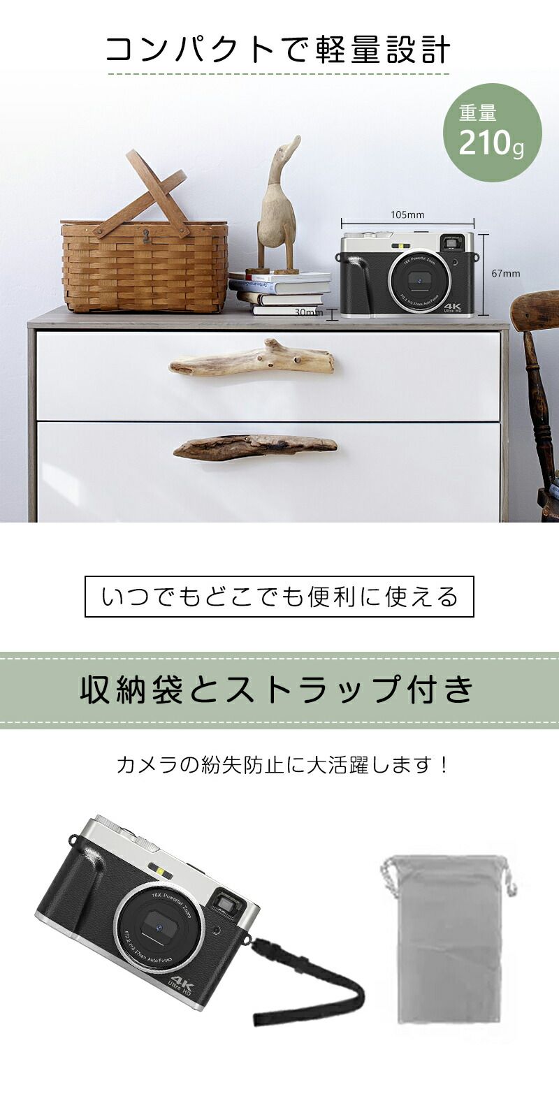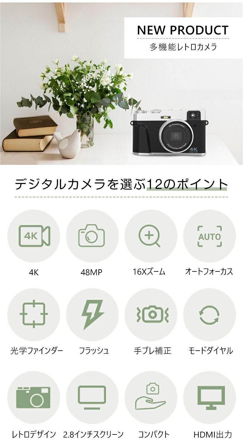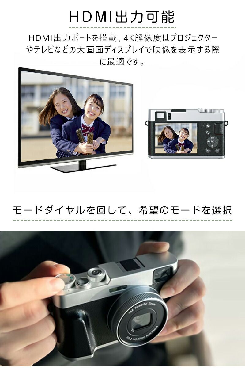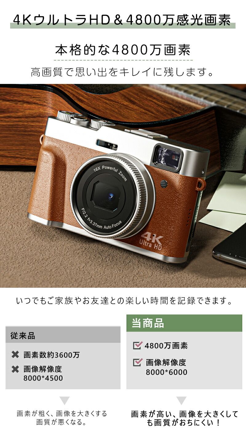 デジカメ デジタルカメラ 5K WiFi機能 16倍ズーム4800万画素 6軸手振れ補正 高画質 ビデオカメラ オートフォーカス ウェブカメラ機能 防塵 軽量 初心者 修学旅行