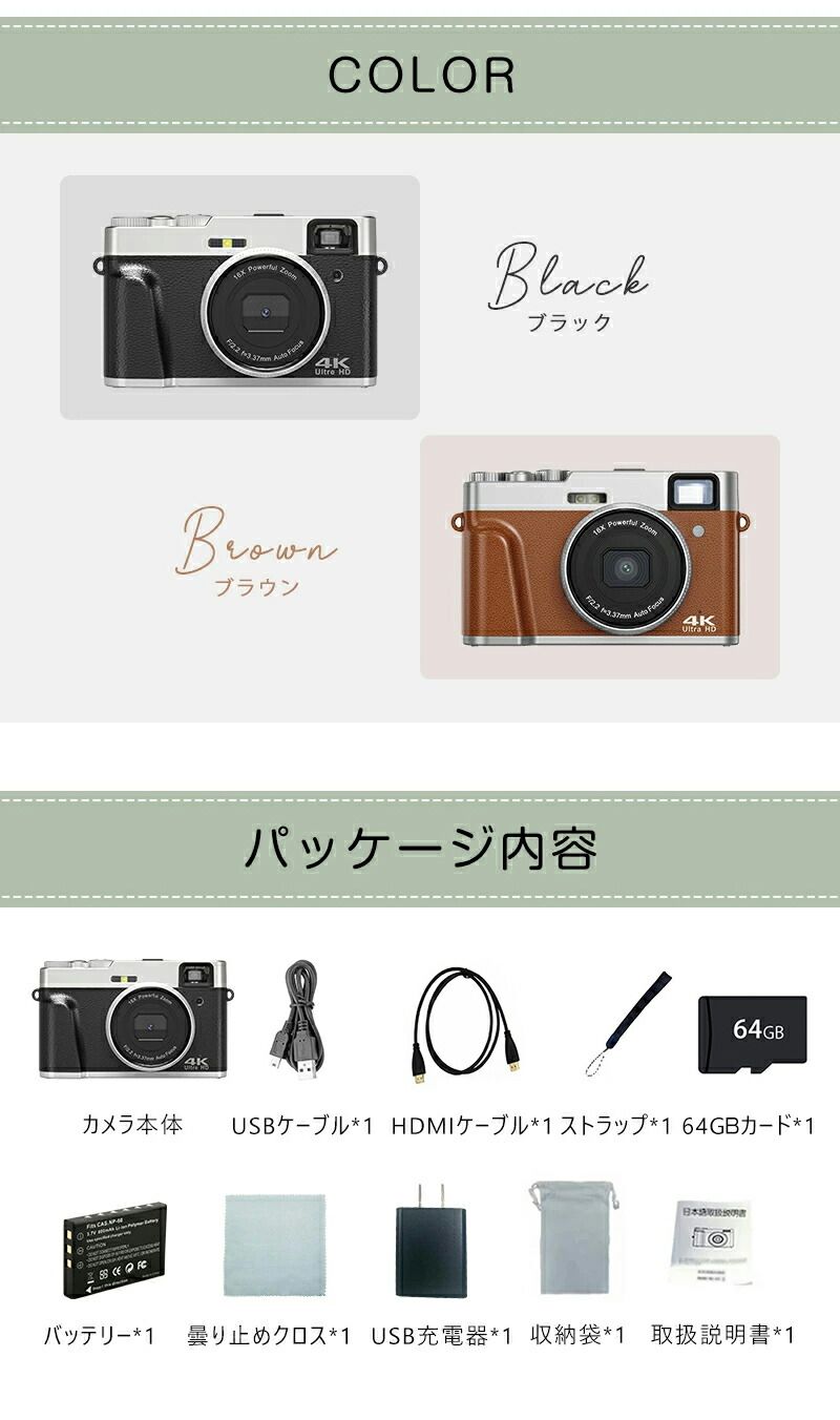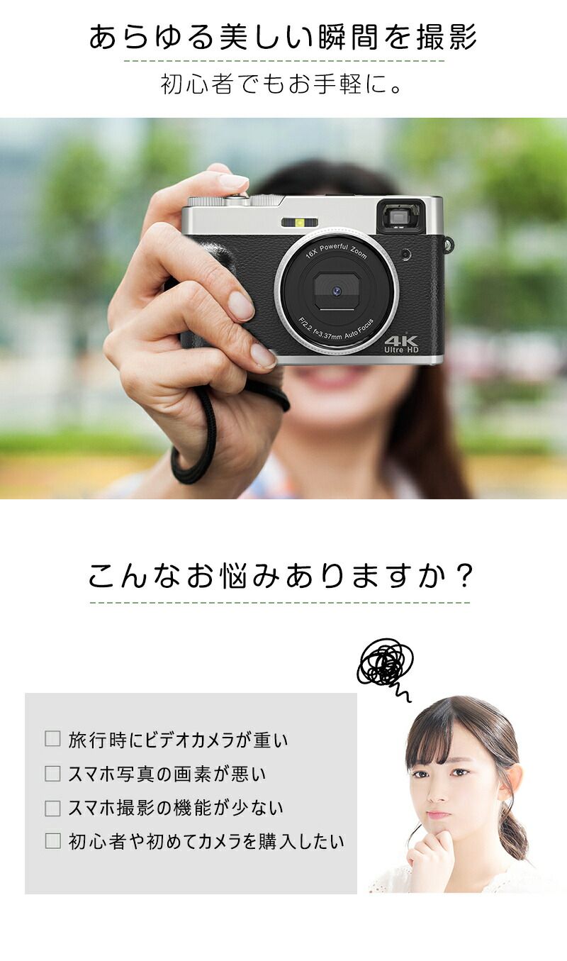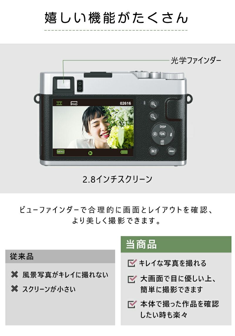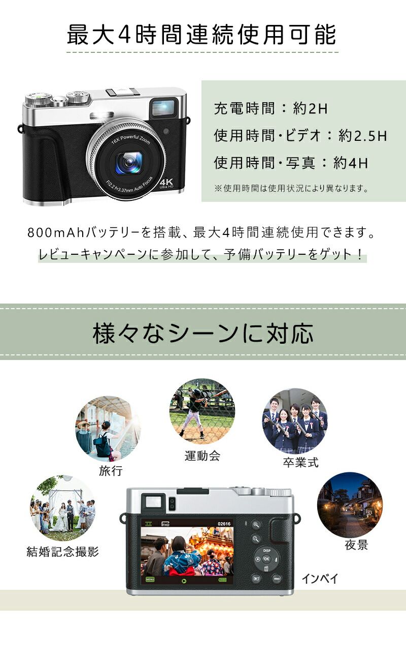 デジカメ デジタルカメラ 5K WiFi機能 16倍ズーム4800万画素 6軸手振れ補正 高画質 ビデオカメラ オートフォーカス ウェブカメラ機能 防塵 軽量 初心者 修学旅行
