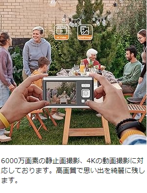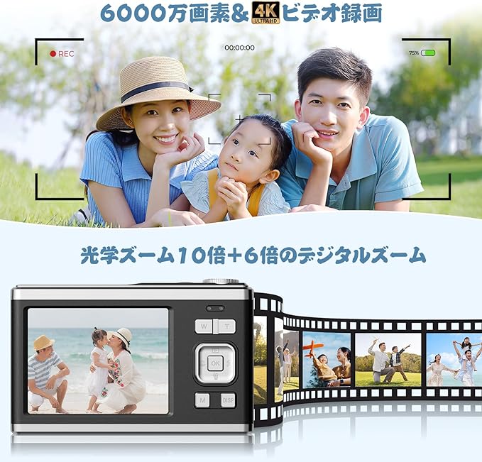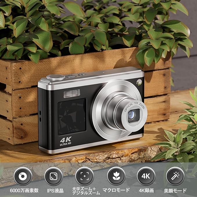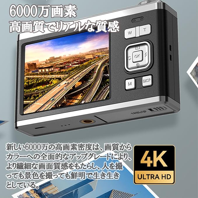 デジタルカメラ 4K 6000w画素 小型 軽量 高画質 オート 安い HD録画 美顔撮影 16倍ズーム オートフォーカスAFオートフォーカス プレゼント 2024新品