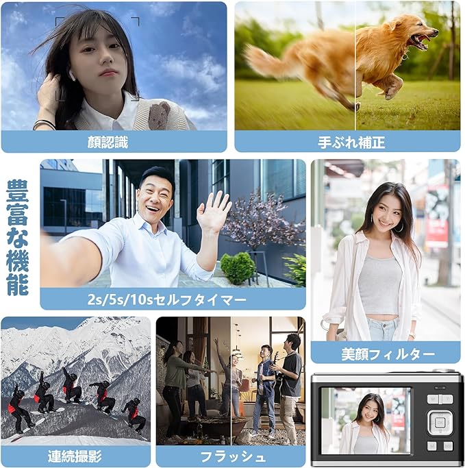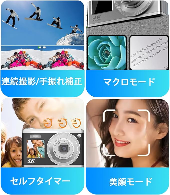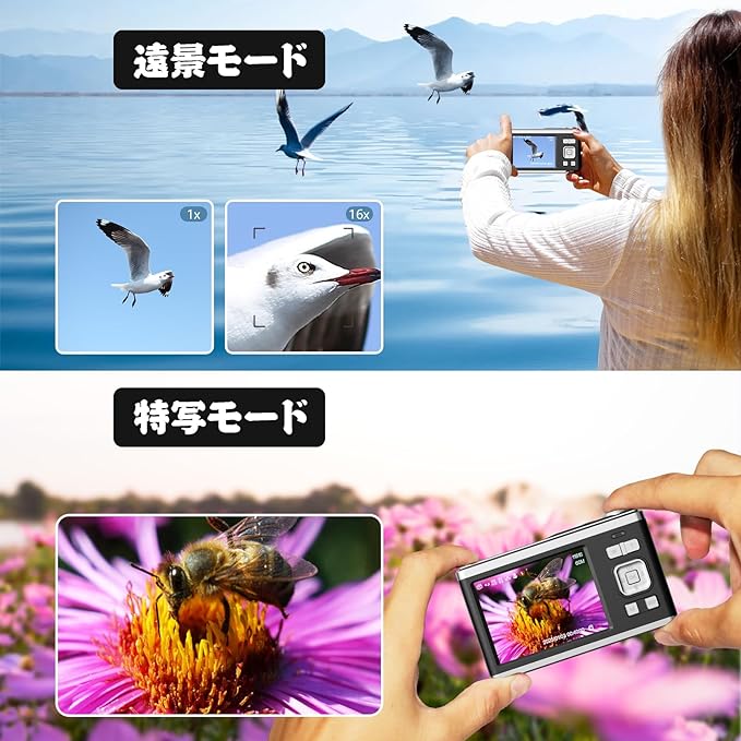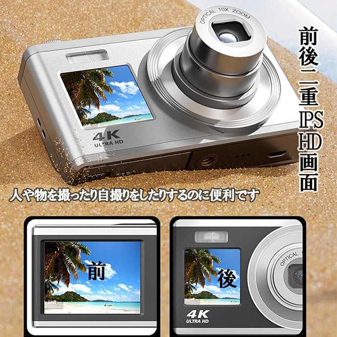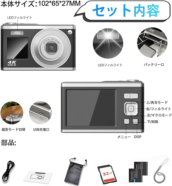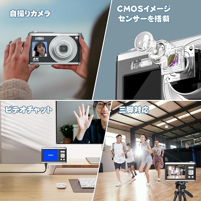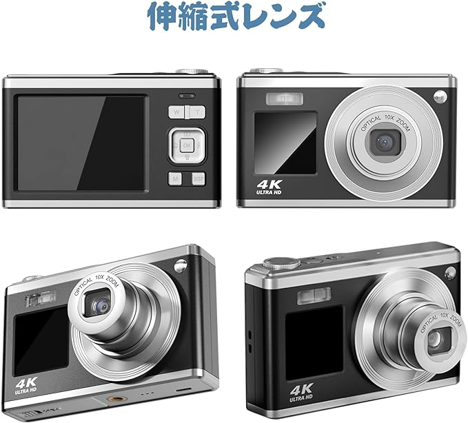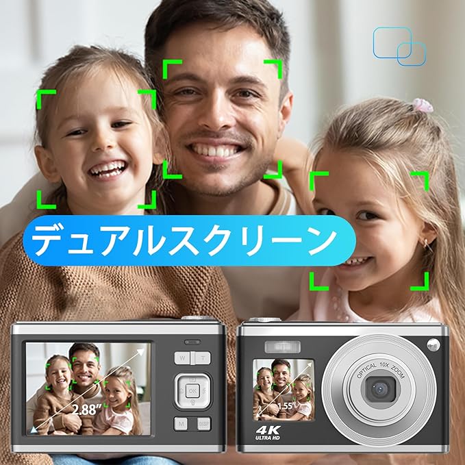 デジタルカメラ 4K 4400万画素 キッズカメラ 安い 軽量 2.4インチ 初心者 子供 向け 16倍ズーム ポケット デジカメ 自撮り 動画 撮影 AF プレゼント 2023 新品 コンパクトデジタルカメラ 日本語取扱説明書 キッズカメラ 安い 軽量 2.88インチ