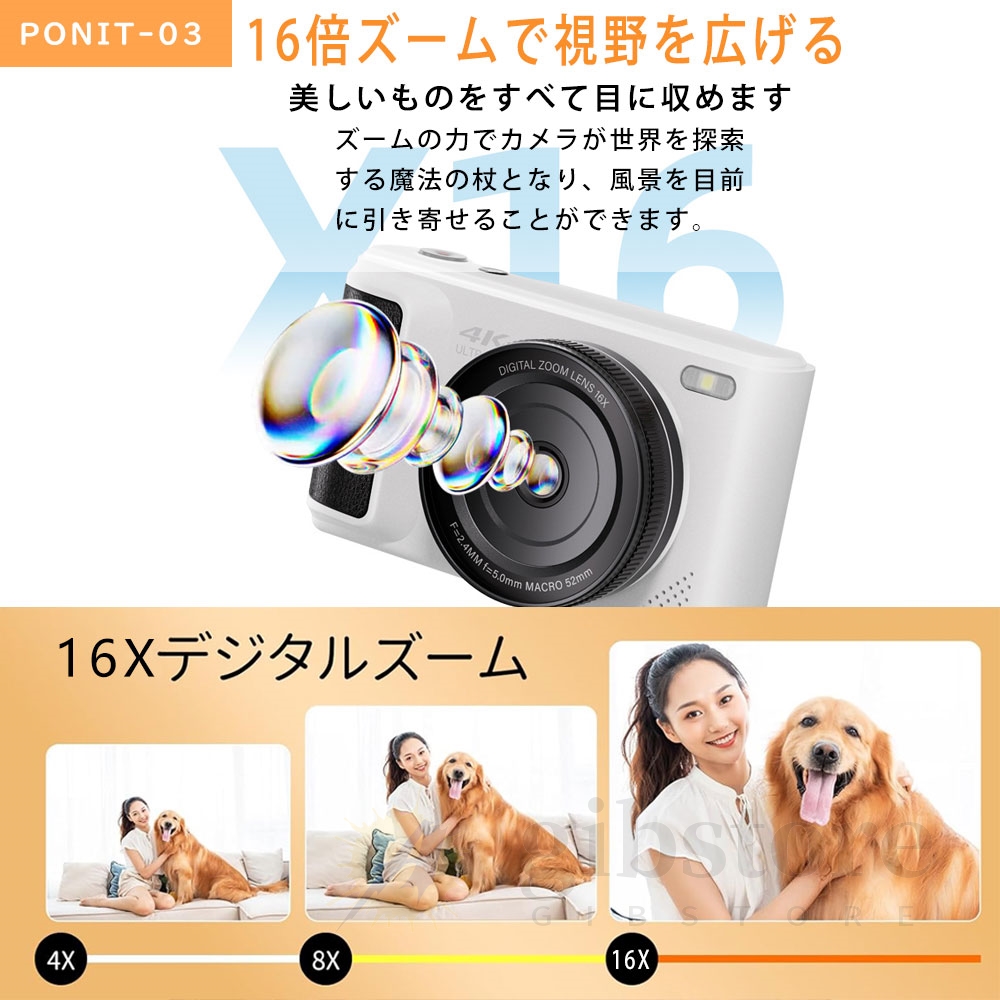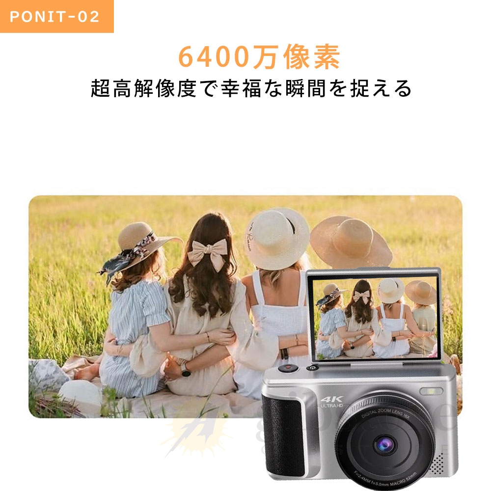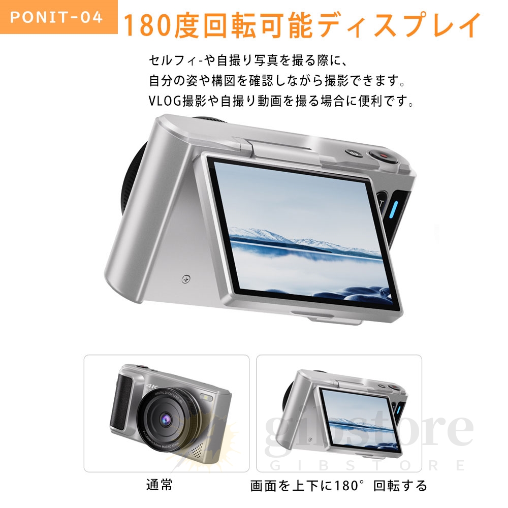デジタルカメラ 4K 6400万画素 動画撮影 2.8インチ 16倍ズーム 180度回転可能 コンパクト ビデオカメラ 自撮り Vlogカメラ 軽量 卒業修学旅行 初心者 新品 2025