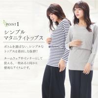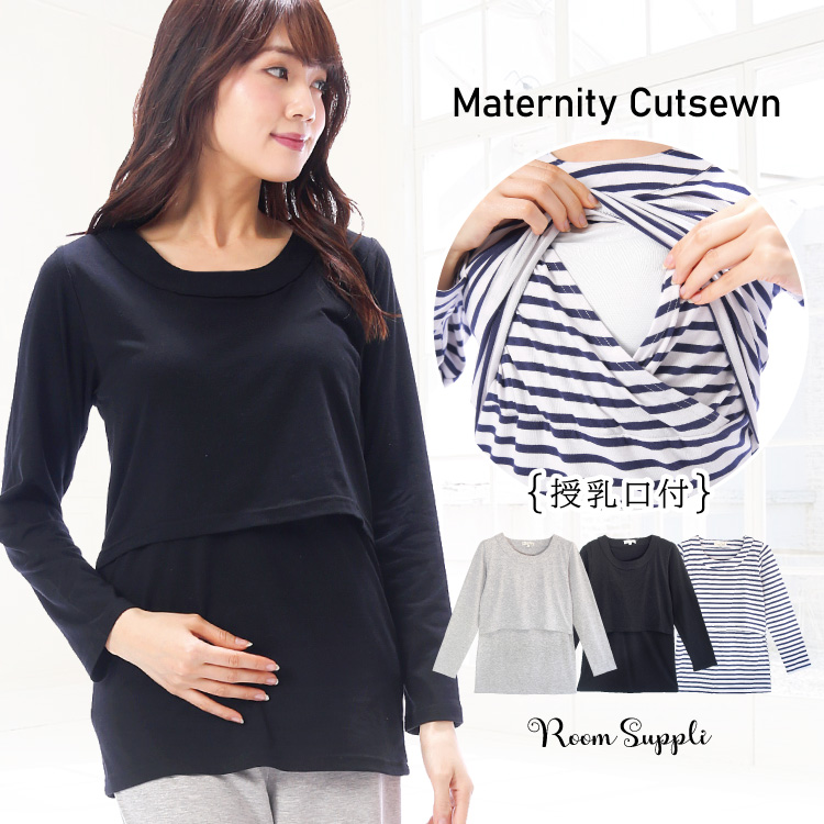 マタニティ 授乳服 トップス 春 長袖 部屋着 Tシャツ 授乳口付 カットソー 春夏 天竺ニット 無地 産前 産後 入院 レディース ルームサプリ M L LL x2-12052