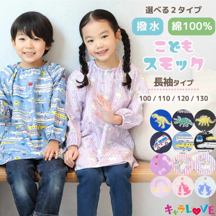スモック 撥水 保育園 幼稚園 ポリエステル 綿100% 子供用 女の子 男の子 長袖 ネームタグ付き キッズ リボン エプロン ポケット付き 入園入学 z8-24931all