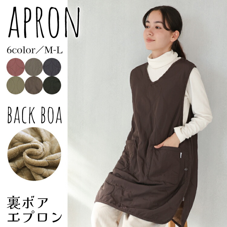 エプロン おしゃれ 保育士 秋 冬 裏ボア あったか ロング丈 かわいい 冬向き 両サイドスナップボタン 全開 ポケット付き 軽量素材 暖かい w6-35523all