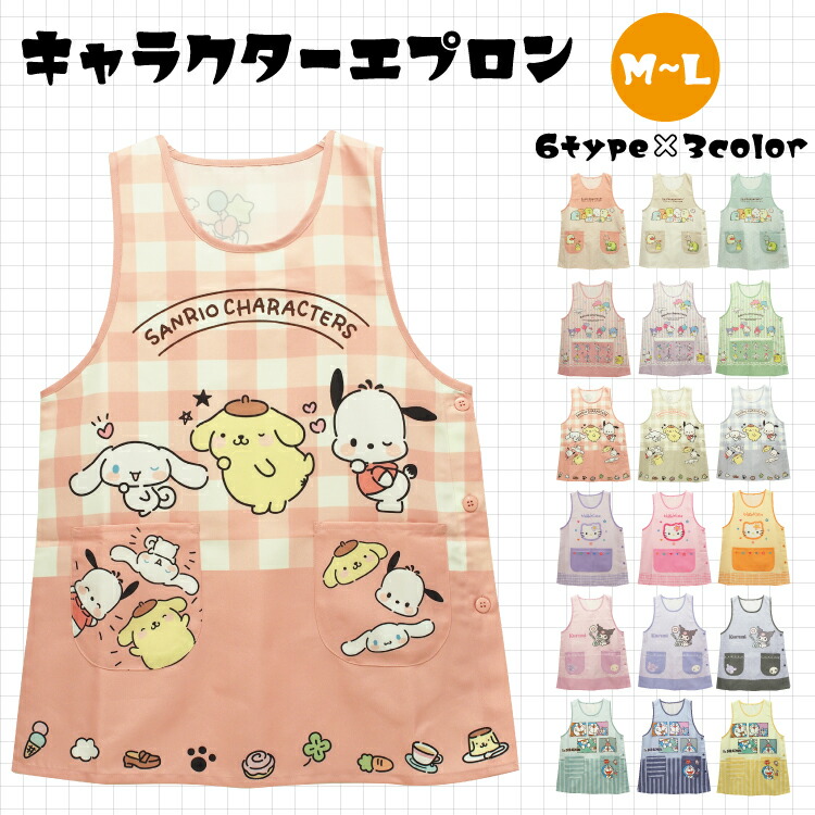 エプロン 保育士 キャラクター サンリオ ショート丈 すみっコぐらし サンリオ犬 ハローキティ クロミ マイメロディ シナモロール ドラえもん w5-44341all $$