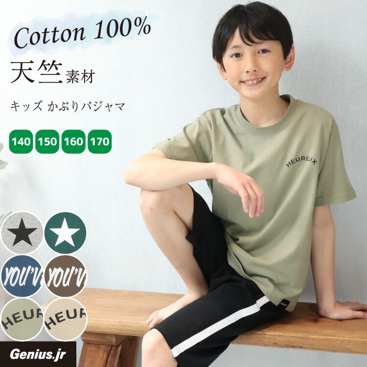 パジャマ キッズ ジュニア 半袖 綿100% 男の子 夏 天竺ニット ロゴ かぶり ハーフパンツ 子供 小学生 中学生 セットアップ 上下セット z8-54103