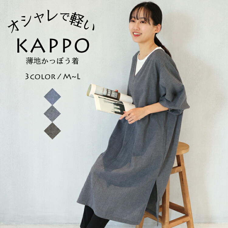 割烹着 おしゃれ 夏 保育士 ロング丈 かっぽう着 薄地 シャンブレー生地 軽量 無地 ワンピース サイドスリット 可愛い ポケット付き 家事 大人用 w7-72619 圧縮