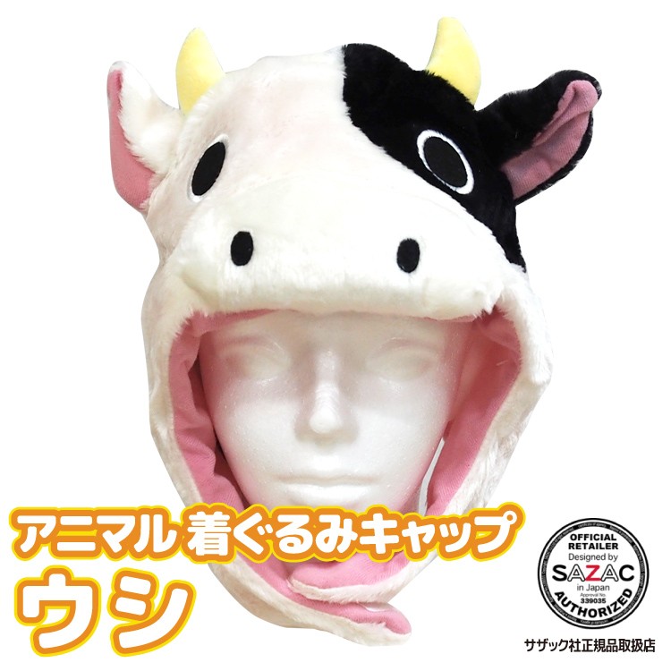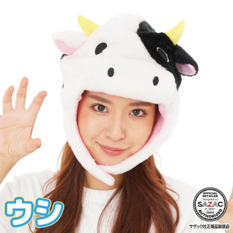 着ぐるみキャップ 帽子 被り物 うし キャラクター ハロウィン 大人用 フリース サザック SAZAC コスプレ 仮装 なりきり y3-cap-2658