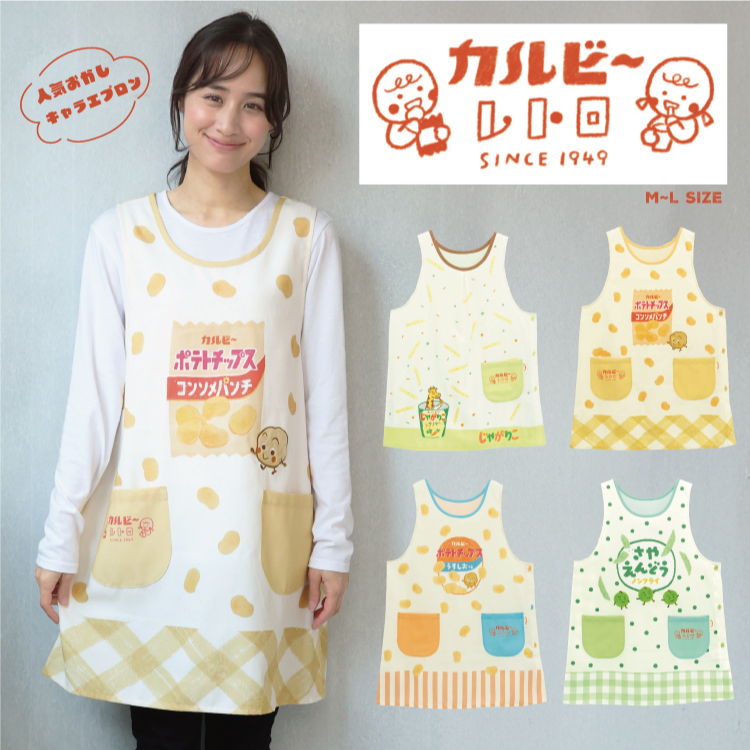 エプロン 保育士 キャラクター お菓子 カルビー ポテトチップス コンソメパンチ じゃがりこ ポケット付き サイドボタン 速乾性 ノーアイロン x12-cf44114all