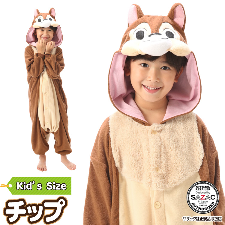 着ぐるみ パジャマ 子供用 130cm 110cm チップ フリース キャラクター SAZAC 正規ライセンス品 仮装 衣装 コスプレ ハロウィン 子供 チップとデール y1-dny063fh