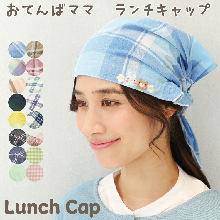 ランチキャップ おてんばママ 三角巾 大人 かぶるだけ ゴム付き 可愛い 保育士 給食 保育園 幼稚園 小学校 無地 実習 かわいい フリーサイズ x5-lunchcap $$