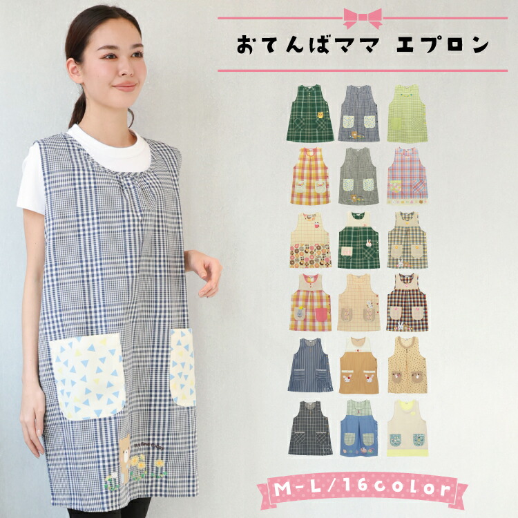 エプロン 保育士 おてんばママ かわいい 介護士 看護師 家事 大人用 ギフト プレゼント チェック ストライプ うさぎ くま M〜L x5-wa7010all