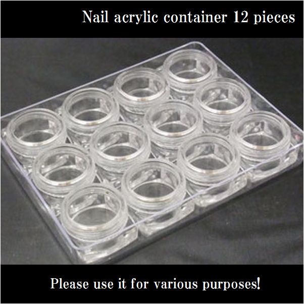 アクリル製のしっかりしたケース1個と中コンテナの12個セットです!ネイルアート用品など、様々な用途にご利用下さいませ!