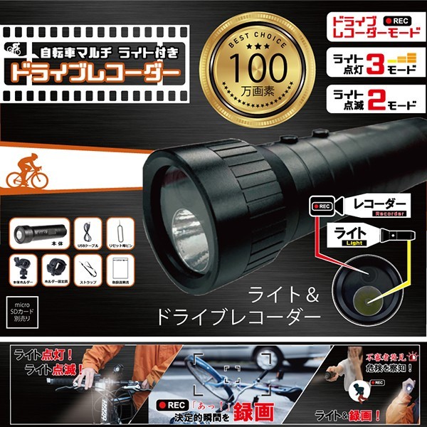 | 商品説明 | 近年急上昇中の自転車バイク事故のために☆ 万が一に備えて!自転車バイク用のドライブレコーダー登場! 取り付け簡単!更にライトにもなるので、夜道の運転にも安心!不審者対策にも サイズ・容量 本体サイズ:約30.5x36x127mm 本体重量:約145g パッケージサイズ:約(W)15x(H)21.8(ヘッダー含む)x(D)5.5mm パッケージ込重量:約332g ■生産地:中国 ■素材・成分:材質:[本体]アルミニウム、[ホルダー]ABS+金属 電源:5V 2000mAh内蔵リチウム電池 レンズ画像度:100万 レンズ視野角:120° ビデオ解像度:1920x1080 DPI ビデオ記録方式:AVI 付属品:本体、USBケーブル、本体ホルダー、ホルダー固定具、ストラップ、リセット用ピン、取扱説明書 保証期間:180日 注意事項 ・本製品はあらゆる状況において映像の記録を保証するものではありません。 ・本製品は事故の証拠として裁判などで効力を保証するものではありません。 ・本製品の故障や本製品使用によって生じた障害、及びMicroSDカードに保存されたデータ破損、それらによる損害については弊社は一切の責任を負いません。 ・本製品は車両の走行状況などを記録する商品です。それ以外の用途で、いたづらに使用したりする行為は、 個人情報保護法に抵触したり、プライバシーや肖像権を侵害する場合がございます。これらの場合については弊社は一切の責任を負いかねます。 ・運転中の操作はお止め下さい。 ・分解、改造、修理をしないでください。火災、怪我、感電、故障の原因になります。 ・本体は走行中に落下しないように車両へ確実に取り付けてください。 ・本体に強い衝撃を与えないでください。故障の原因になります。 ・本体に無理な力を掛けないでください。可動範囲には限度があり、無理な力を掛けると破損や故障の原因となります。 ・乳幼児の手の届かない場所に保管して下さい。付属品を誤って飲み込んだり、怪我の原因となります。 ・本製品使用時は必ず指定規格内のMicroSDカードを使用してください。カードの相性による作動不良につきましては、弊社は一切の責任を負いかねます。 ・LED式信号機は映像がちらついたり点滅している映像が記録される場合がございます。識別や記録に関して弊社は一切の責任を負いかねます。 ※本製品の仕様および外観は改良のため、予告なく変更することがあります。予めご了承ください。 ※microSDカードは別売りとなりますので、ご注意ください。 |