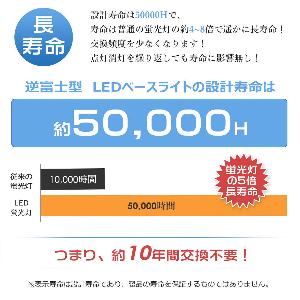 ★長寿命&省エネ! 設計寿命約50000時間!寿命は蛍光灯の約4〜8倍で遥かに長寿命!交換する頻度が少なくて済みます!長寿命を持ちますので、電気代を気にせずに長時間使えます。電気代を節約でき、家計にも優しいです。