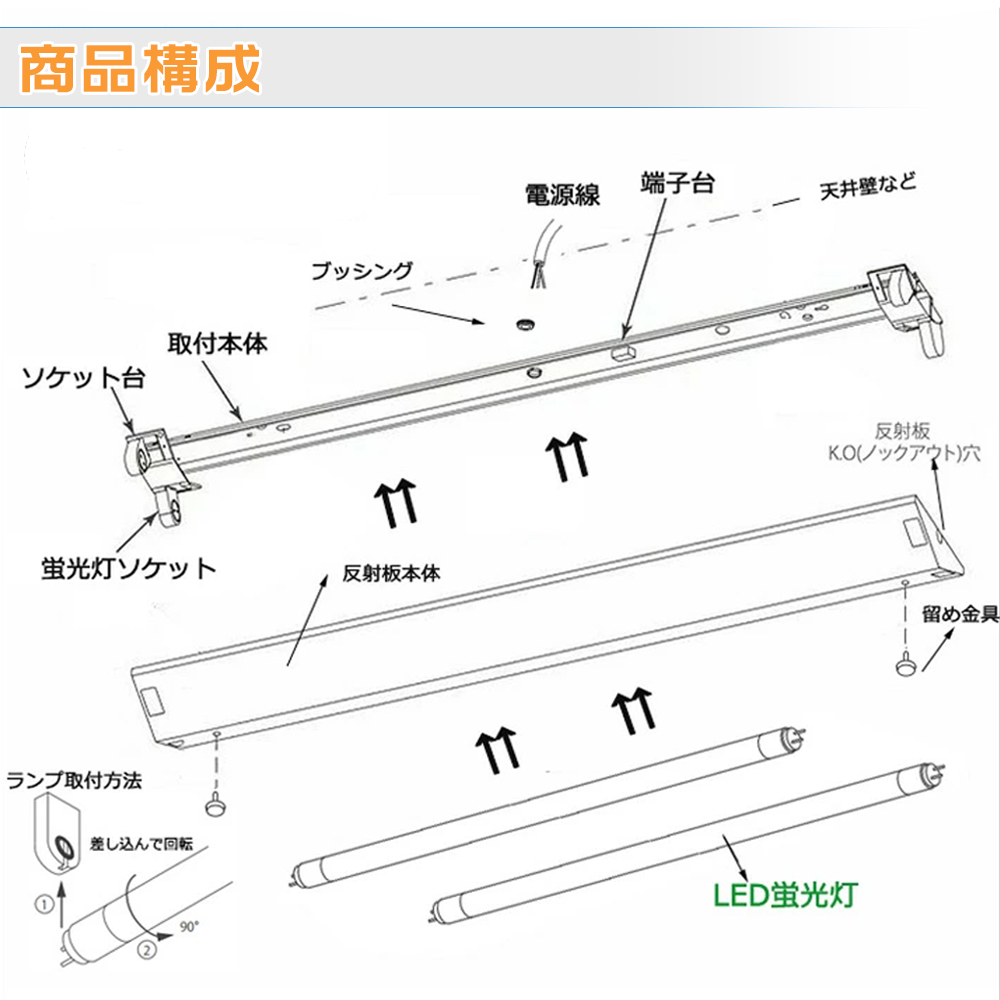 ★ご注意 ※安定器が付いていないため従来の蛍光灯はご使用いただけません。