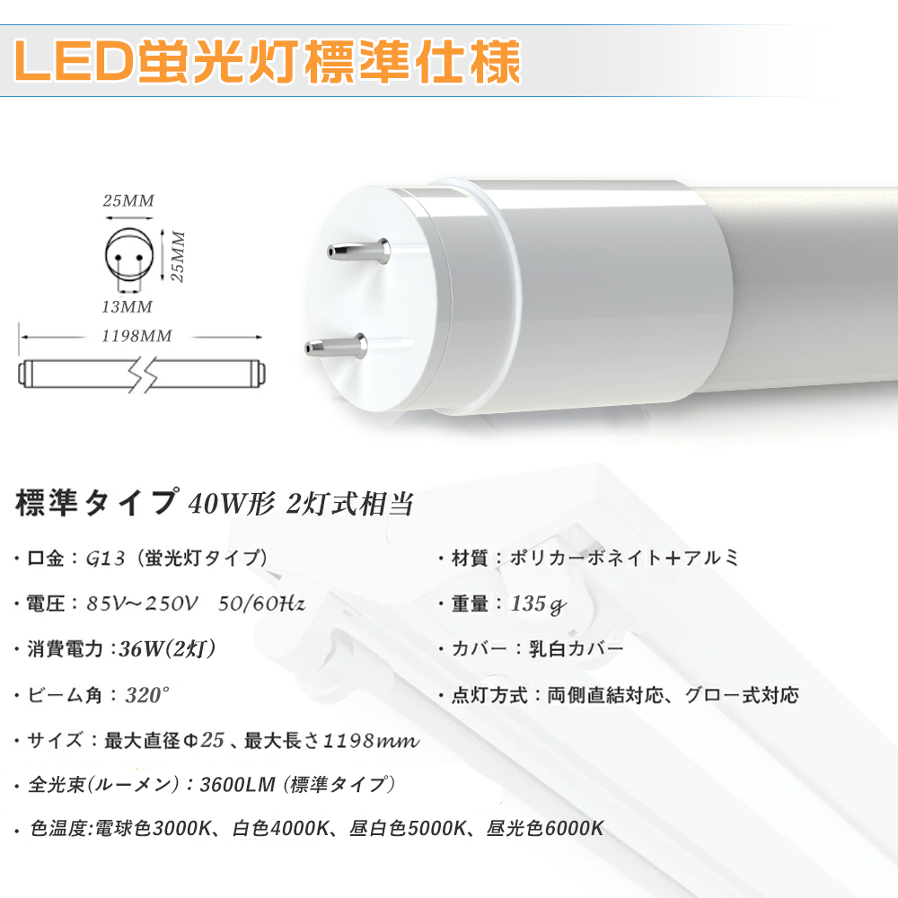 ★超高輝度タイプ!明るさ欲しい方にオススメ!7200lmの高輝度タイプLED蛍光灯2本セット。