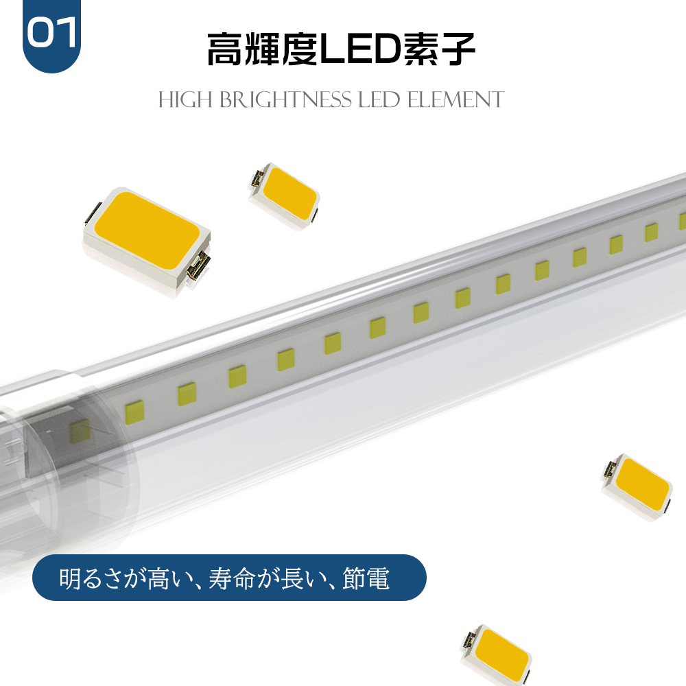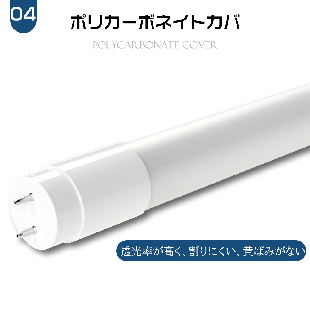 高品質素材LED直管蛍光灯 表面カバーはポリカーボネート材料を採用し、落としても破片が飛び散ることはありません。柔らかい光を発光し、目にやさしいデザインです;透光性はもちろん、耐衝撃性にも優れる。
