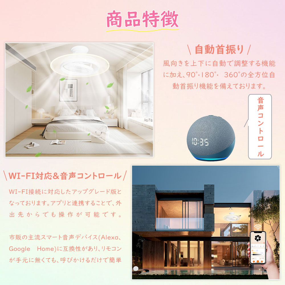スマートスピーカー連携対応 本製品はスマートスピーカー連携に対応し、音声アシスタントによる操作が可能です。 接続後は、「電気をつけて」「風量を下げて」などの音声コマンドで、照明やファンを簡単にコントロールできます。 調理中や手が離せない時、就寝前のリラックスタイムでも、リモコン操作は不要。 話しかけるだけで操作でき、日常の動作をスムーズにサポートします。 音声操作で叶える、快適でスマートな暮らし。 毎日の生活をより便利に、より快適にするスマートファンライトです。