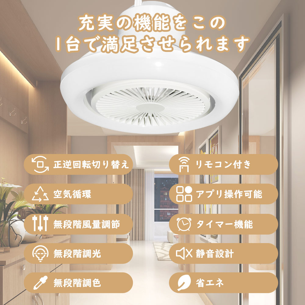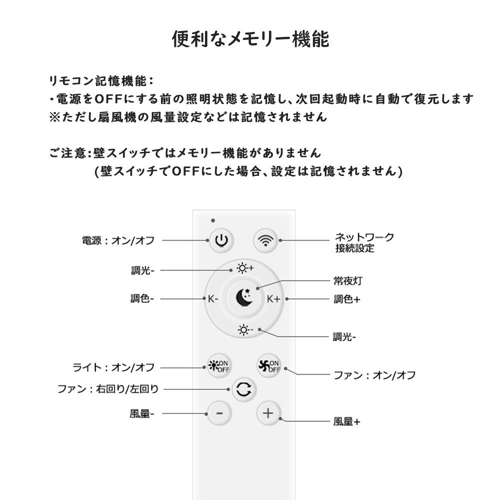 直感操作&音声対応!便利な多機能リモコン付き 多機能リモコンで、風量・照明の明るさ・回転方向・タイマーなどの設定が一目で分かり、誰でも直感的に操作可能です。ボタン配置が分かりやすく、快適な風と明るさを簡単にコントロールできます。さらに、音声操作にも対応しており、横になっている時や手がふさがっている時でも、声だけで簡単にON/OFFができるので、より快適でスマートな生活をサポートします。