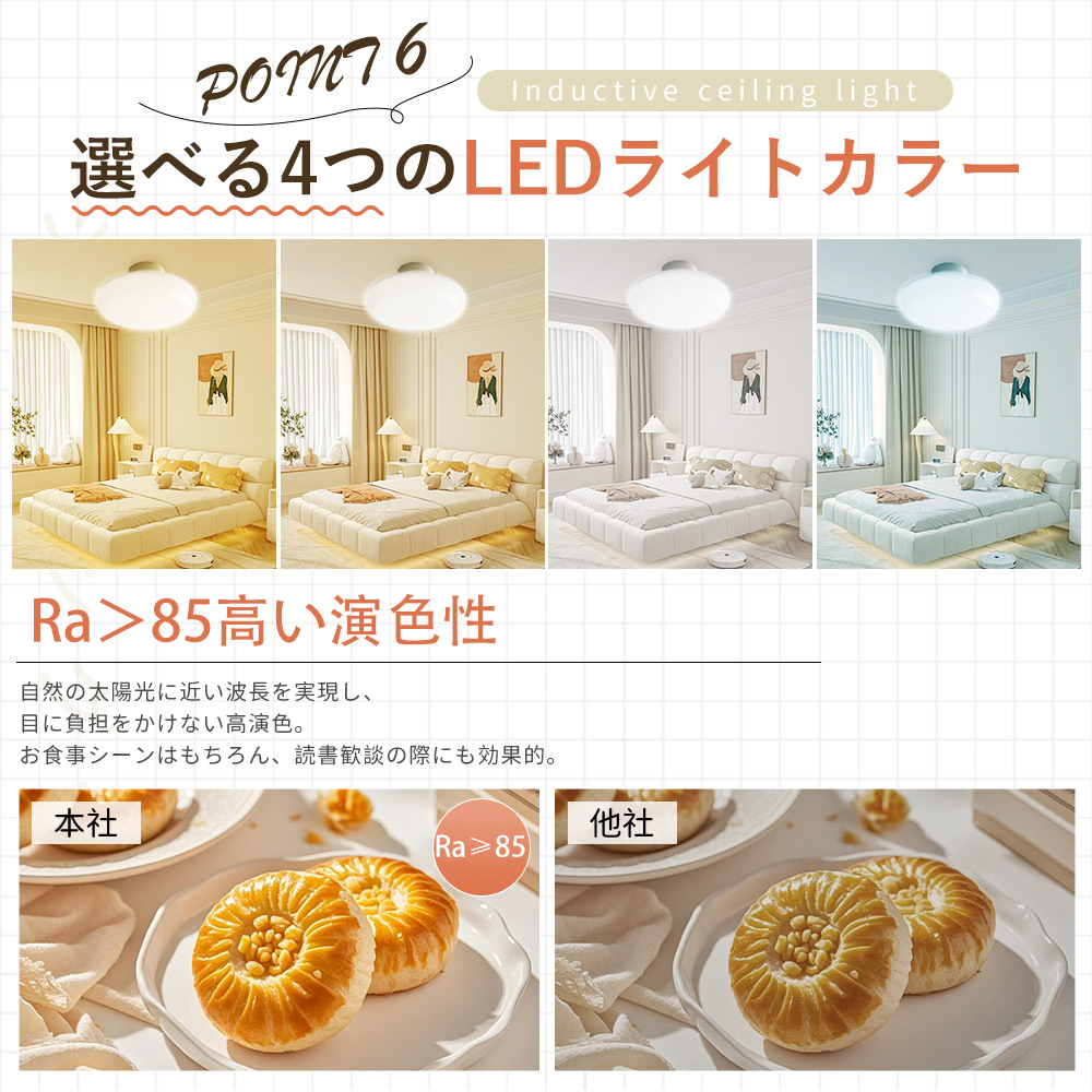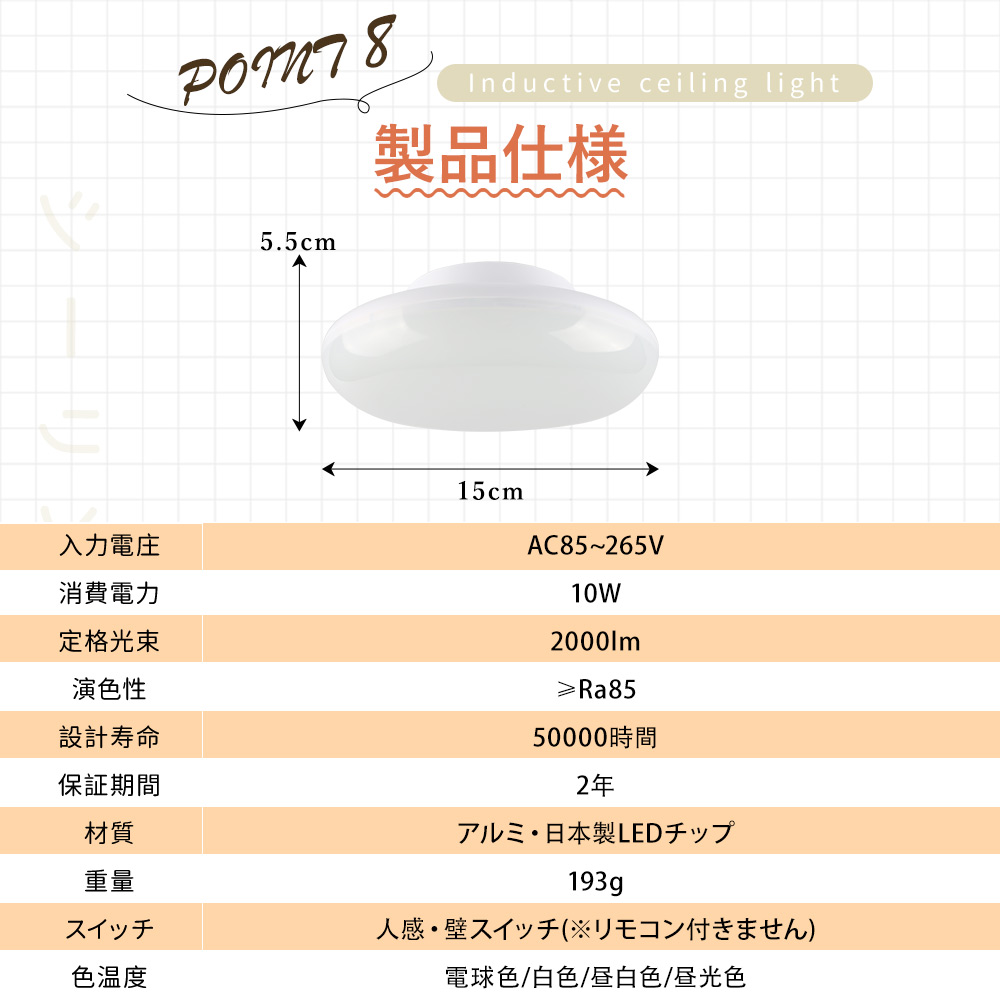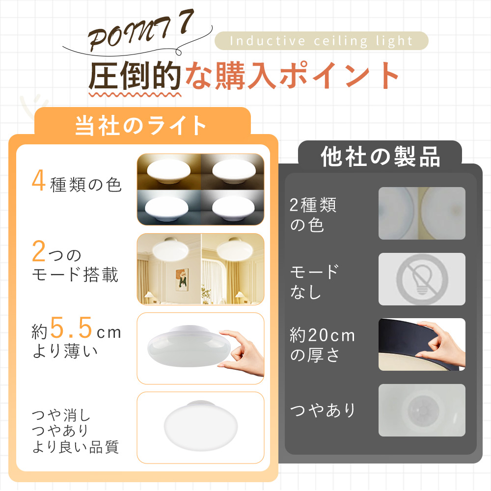 業界超軽薄型&広配光サイズ:直径150mm、厚さ55mm、重さ193g。ミニシリングライトで、お部屋の圧迫感がゼロ、どんな狭い場所にも適用です。従来品に比べ、光がより広範囲に広がるので、薄くてもしっかり明るい。
