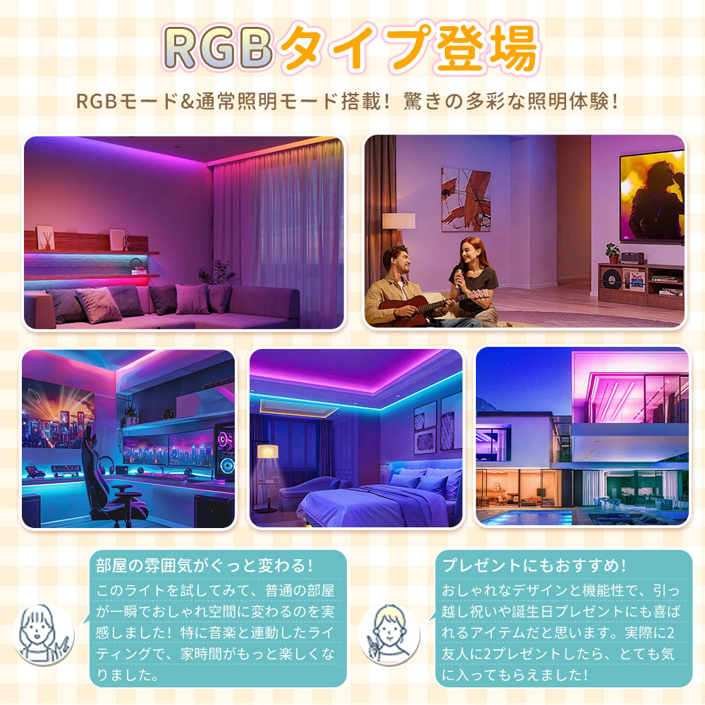 スマートRGBライトによる空間価値の創造 洗練されたRGBライトモードにより、空間の印象を自在にコントロール可能。1600万色を超える豊富なカラーパレットから最適な色彩を選択でき、イベント演出から日常のリラクゼーションまで、多様なシーンに応じた照明環境を実現します。 さらに、リモコンやスマートフォンアプリ「Tuya Smart/Smart Life」による遠隔操作に対応し、カラー調整明るさ設定シーン切替を直感的にコントロール可能。先進的かつ利便性の高い機能により、快適でスマートなライフスタイルをサポートします。
