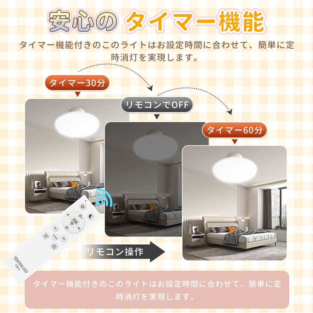 スマートメモリー&タイマーオフ機能で快適&安心 メモリー機能:前回の明るさや色温度を自動的に記憶し、次回点灯時にそのまま再現。毎回設定する手間がなく、ストレスフリーで快適にご使用いただけます。 自動オフ機能:15分?30分のタイマーで自動消灯。消し忘れの心配を解消し、寝室や子供部屋、書斎でも安心。やさしい光を保ちながら、省エネと安全性を両立します。 暮らしのあらゆるシーンに寄り添い、より便利で安心な照明環境を実現します。