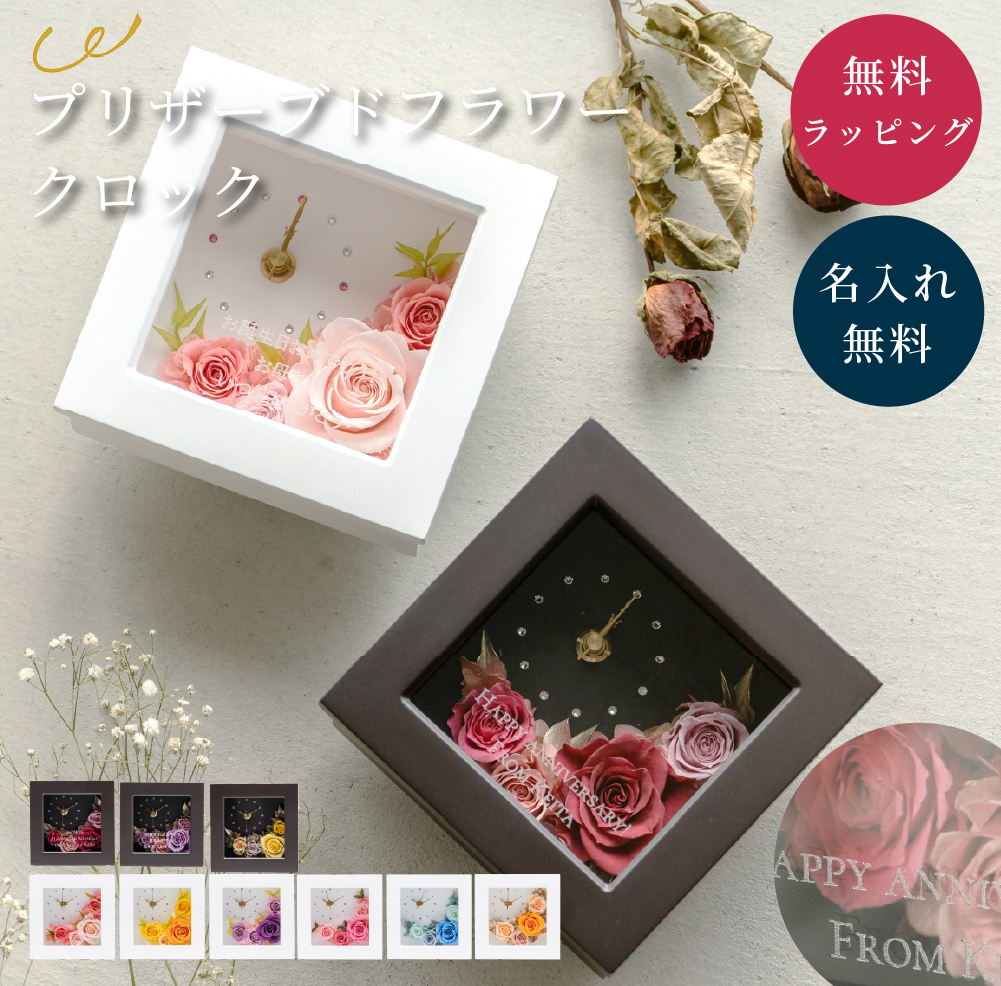 | 名入れ 置時計 プリザードフラワークロック |
