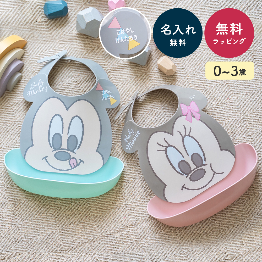 Disney ディズニー はじめてのエプロン 出産祝い 名入れ エプロン お食事エプロン スタイ お食い初め ミッキー ミニー 女の子 男の子 防水 即日発送