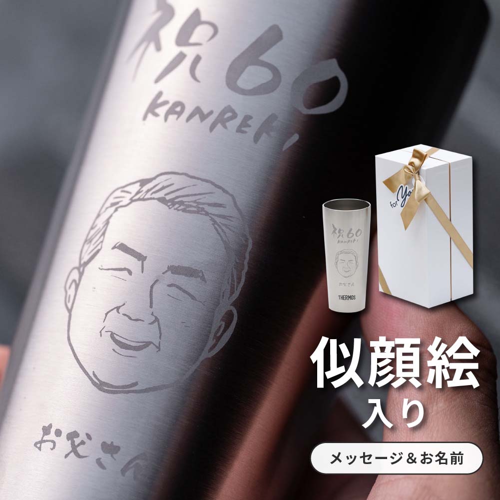 THERMOS サーモス 似顔絵 タンブラー 400ml 真空断熱 保冷保温 ビール ビアグラス ステンレス プレゼント ギフト 退職祝い 定年退職 誕生日