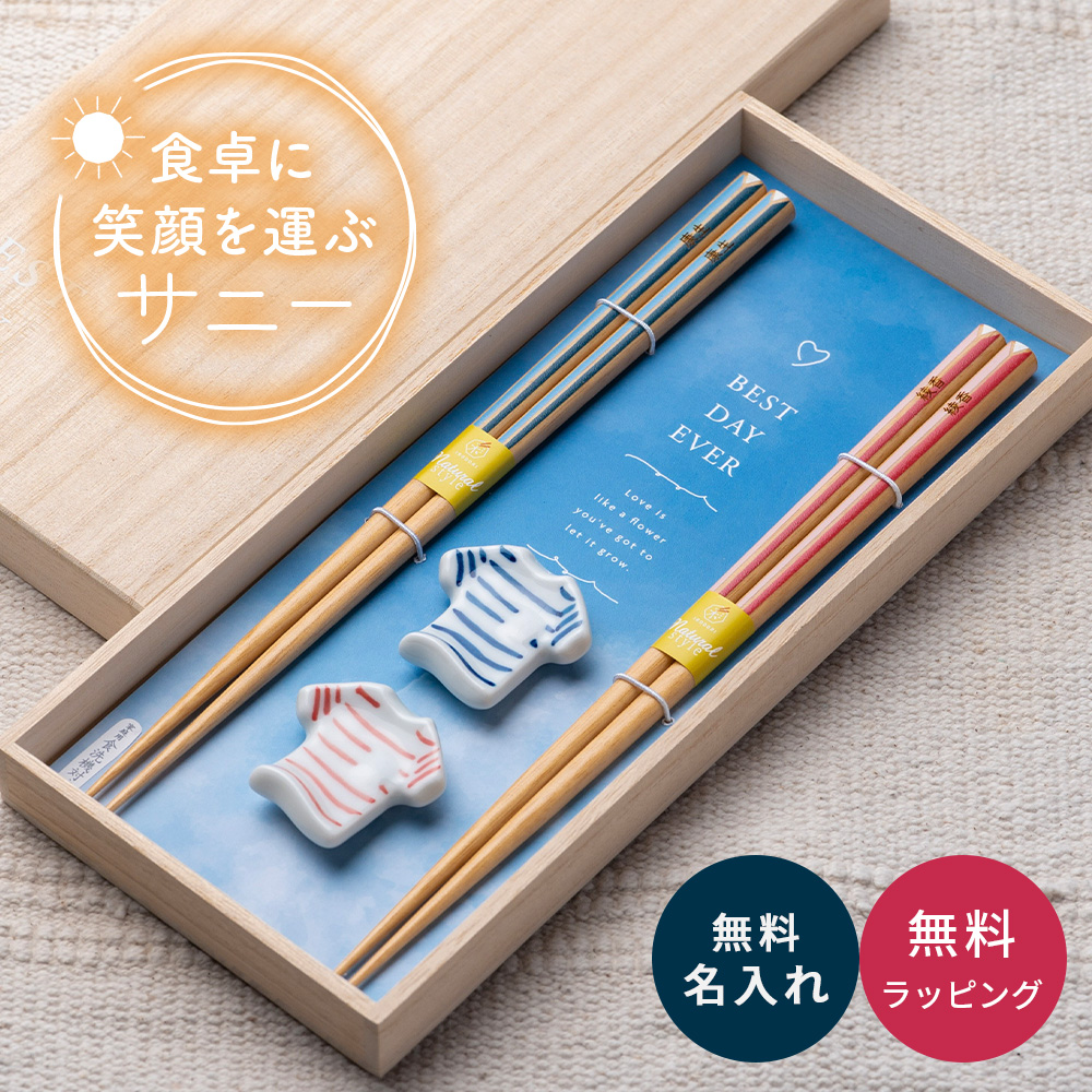 | 名入れ 夫婦箸 SUNNY サニー箸置き揃え 桐箱入り ギフトセット |