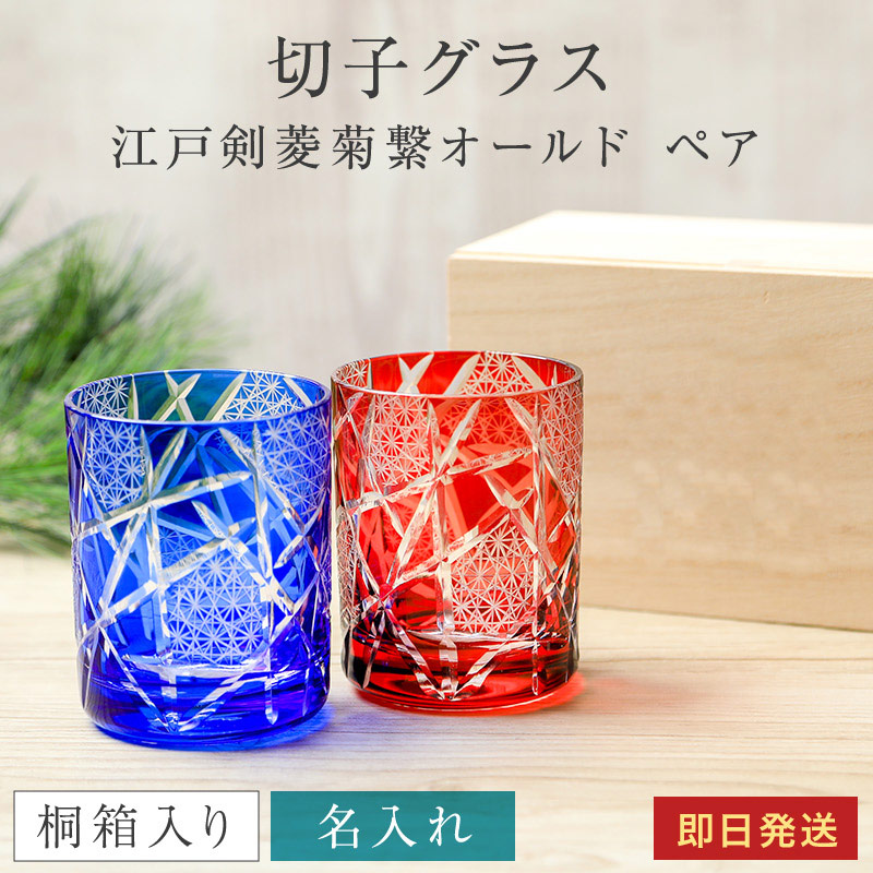 | 名入れ 切子グラス 江戸剣菱菊繋オールド 桐箱入り ペア |