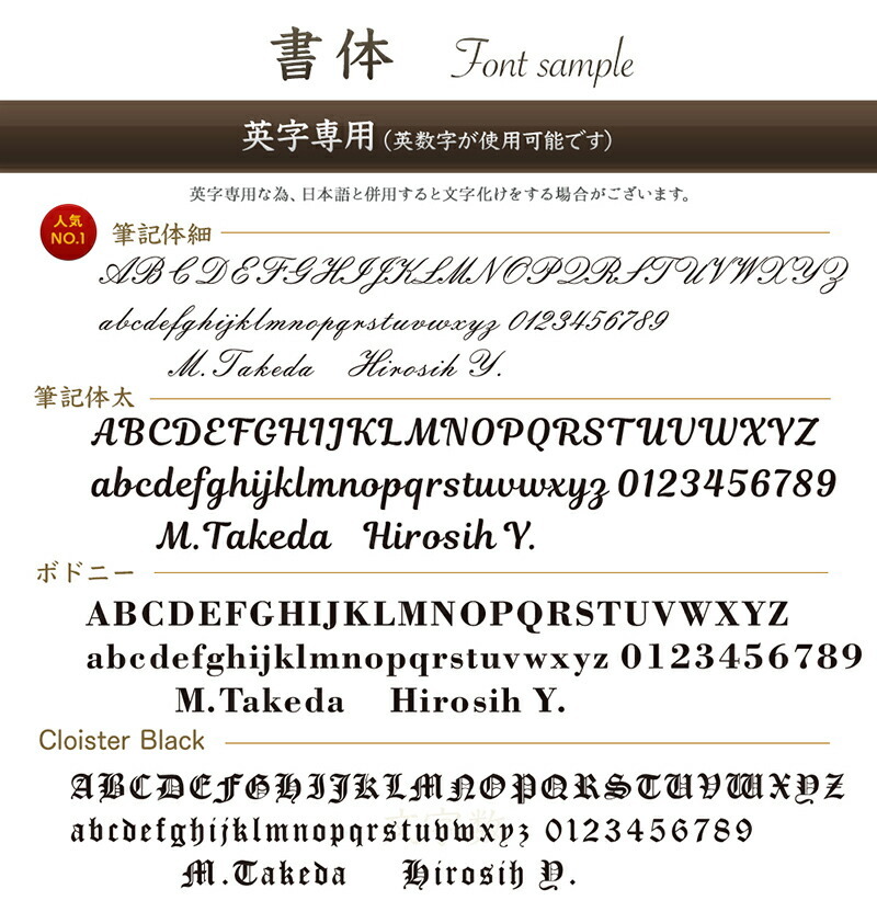 | ※モニターの発色具合によって実際の物と異なる場合がございます。 ※英字で名前の全てを大文字にすると読みづらくなります。 ※スペースやドットなどの記号も一文字と致します。 ※製品の個体差、文字の内容などにより彫刻色(名入れの色)は微妙に変わります。 見本写真との若干異なる場合がございますので予めご了承ください。 ※USBに関しまして PC周辺機器の都合上、初期不良があります場合にはご到着後1週間以内にご相談を頂けますようお願いいたします。 また購入後1か月を経過した商品に関しましては補償対象外となります。 |