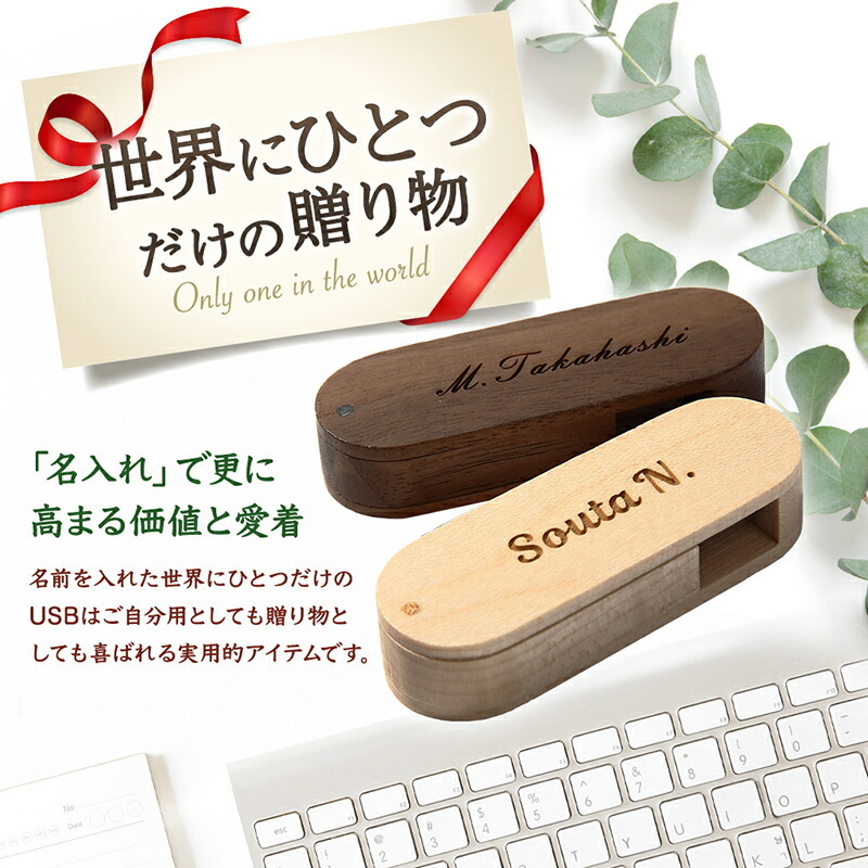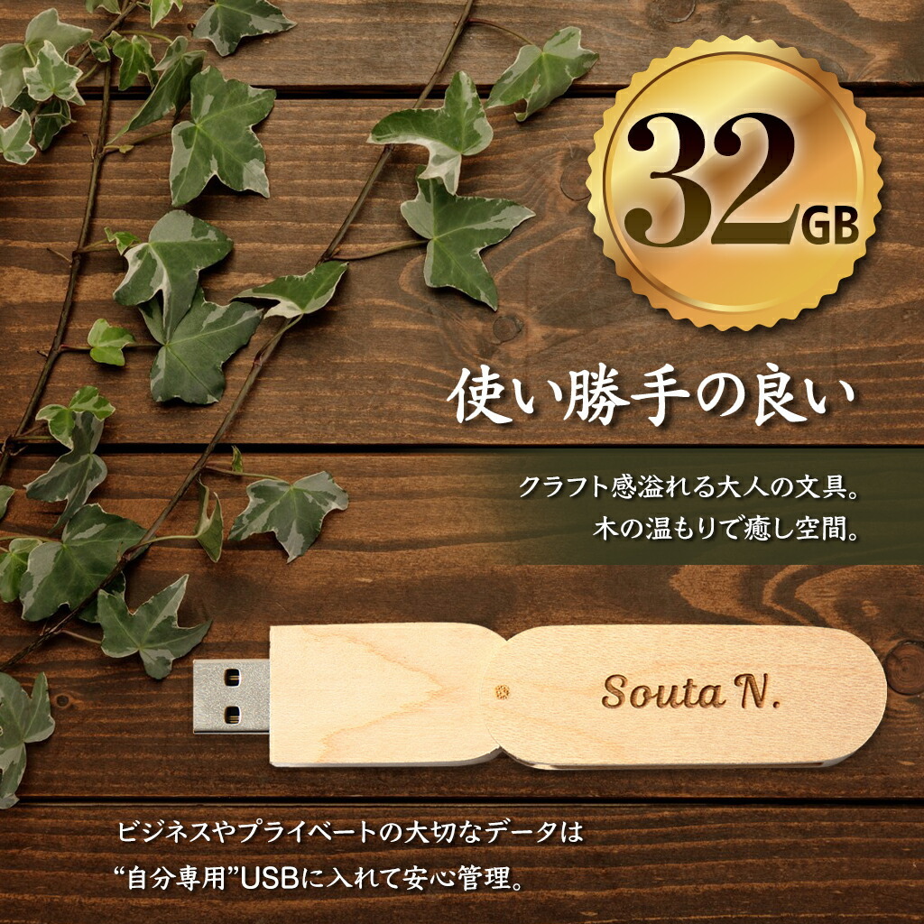 | 優しい天然素材の32GBのUSBメモリ。 温かなぬくもりある仕上がりです。 名入れもできるのでプレゼントに最適です。 |