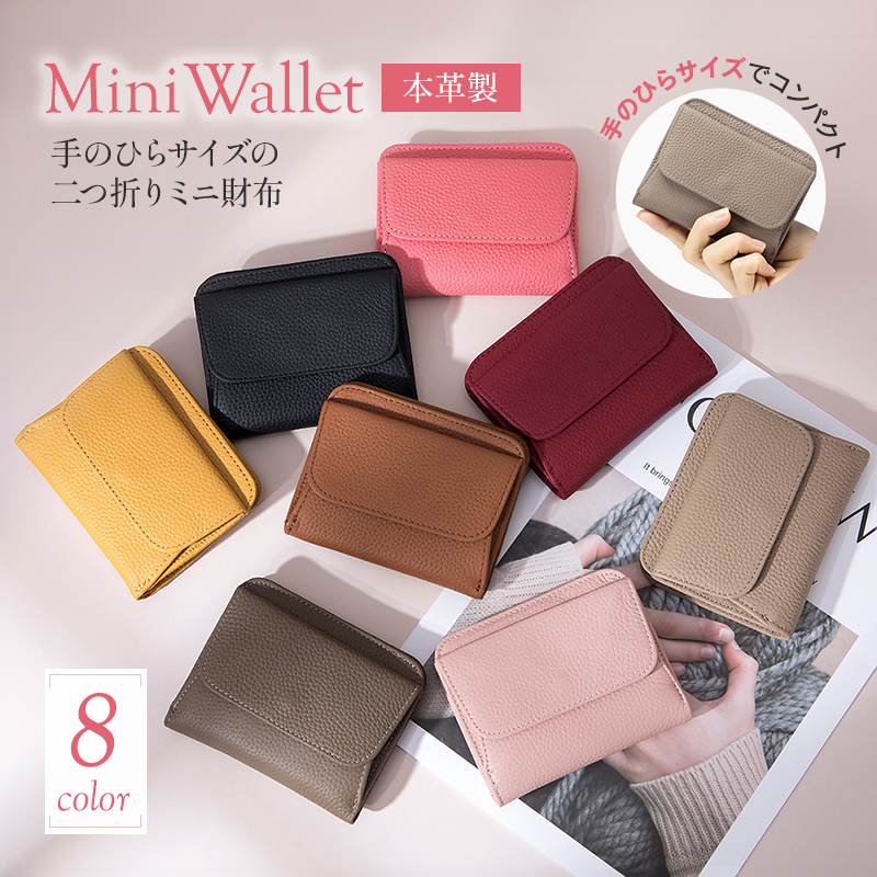 財布 レディース 二つ折り 本革 おしゃれ かわいい シンプル カードケース 収納 小銭入れ お札 ポケット ミニ ウォレット コンパクト ブラック プレゼント