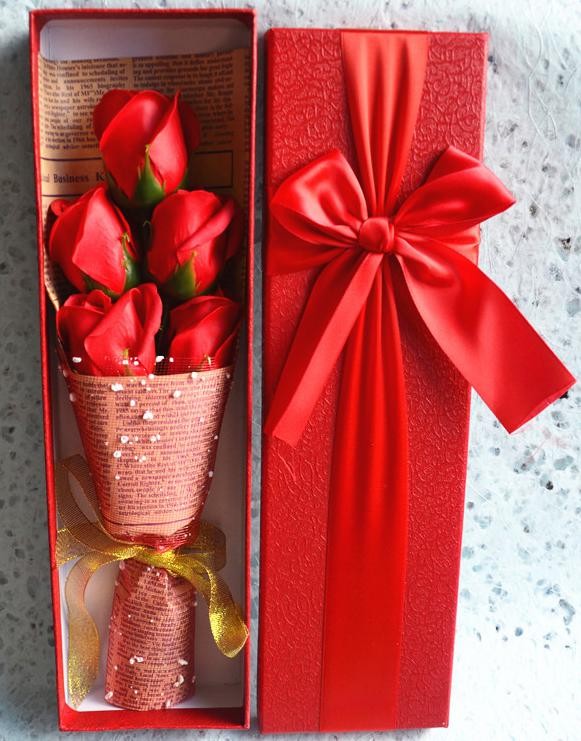 ソープフラワー 石鹸で出来たバラの花束 5本 ブーケ ギフト メッセージカード 付き