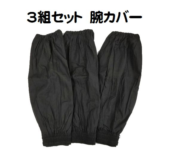 3組セット 腕カバー アームカバー 黒 腕抜き 綿100% ガーデニング 農作業 事務仕事 男女兼用 メール便送料込み(ポスト投函)