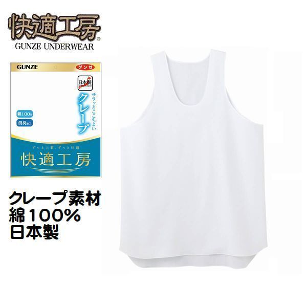 夏素材 クレープ グンゼ 紳士 肌着 ランニング シャツ 快適工房 メンズ インナー 下着 夏用 さらさら 消臭加工 綿100% 日本製 6520