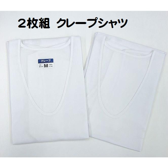 紳士 2枚組 クレープ肌着 半袖U首シャツ 白 綿100% ちぢみ素材 夏素材 紳士 メンズ 肌着 インナー