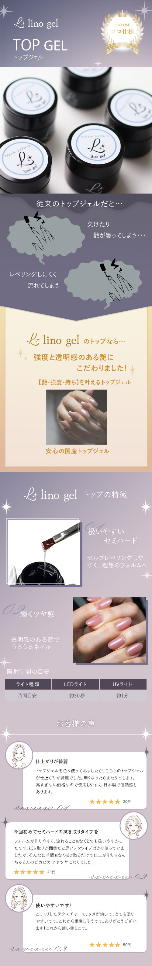 LinoGel リノジェル トップコート トップジェル 国産 新品 ジェル ネイル トップ 5g セミハード ツヤ 艶 透明感 UV LED対応