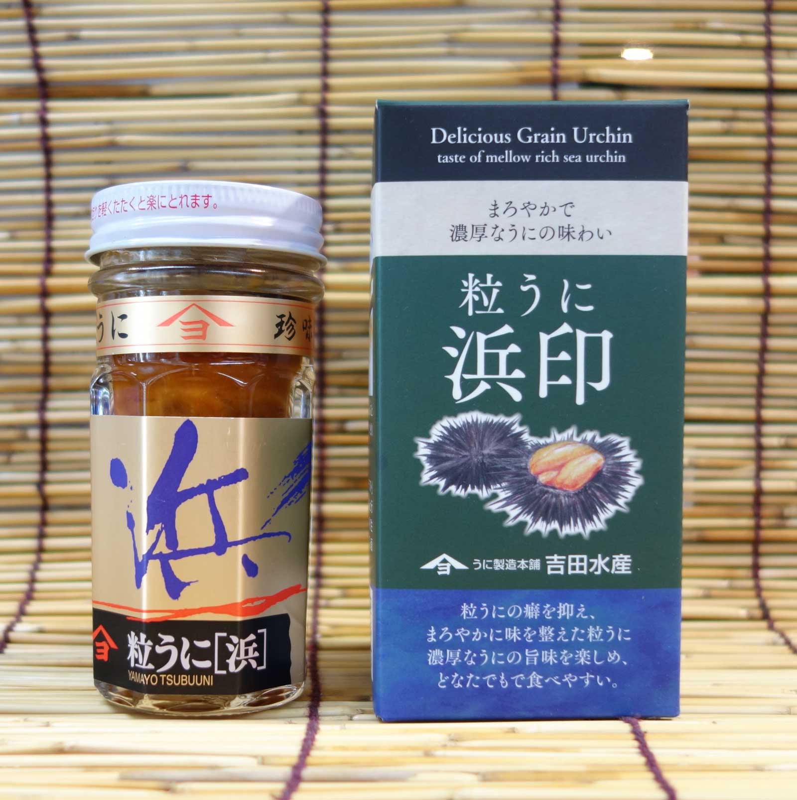 角島そばの特牛港吉田水産製、バフンウニを食べやすく味付けしてあります。内容:60g瓶 紙箱入豊北町;吉田水産