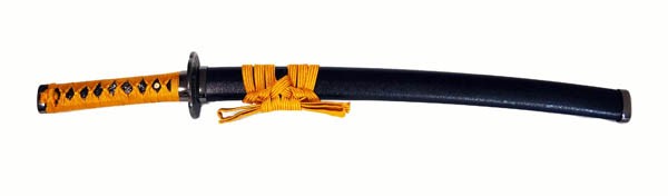 柄:樹脂製(黒柄鮫・人絹製金茶柄糸捻巻)