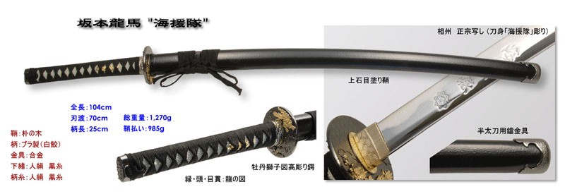 刀身には、「海援隊」の文字と坂本家の家紋が刻まれています。