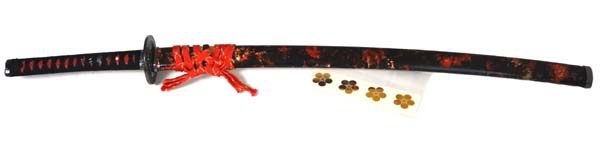 鞘ー木製 黒地金赤刷毛目塗り(蒔絵シール)