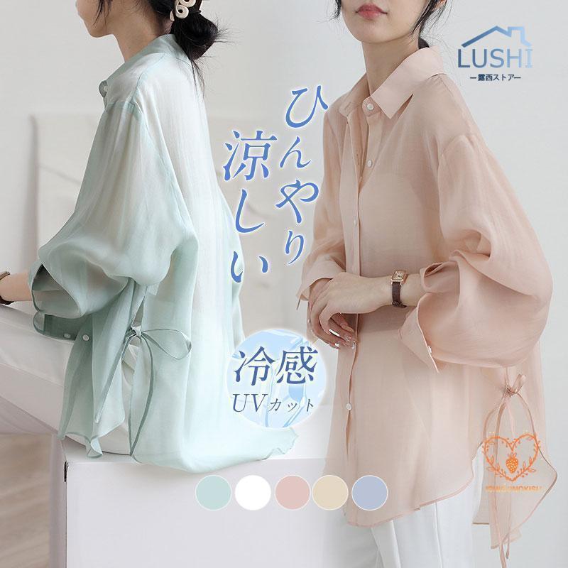 ロングシャツ ラッシュパーカー シャツ UVカット ひんやり 長袖 UVパーカー ブラウス 薄手 通気 吸汗速乾 紫外線対策 夏 日焼け防止