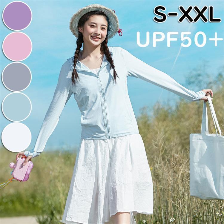 ラッシュガード レディース パーカー ソリッド長袖 体型カバー UVパーカー 冷感 ひんやり 無地 薄手でしっかりUVカット 涼感素材 ラッシュガード