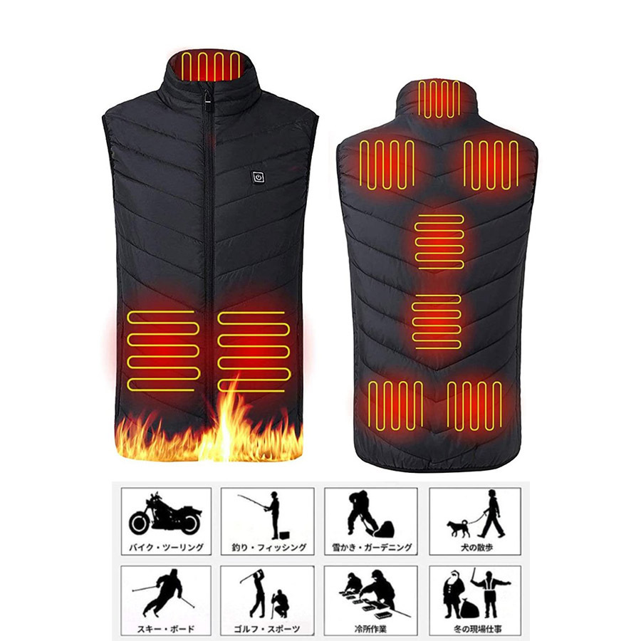 電熱ベスト 加熱ベスト 電熱ジャケット 電熱ウエア USB加熱 男女兼用 3段階温度調節 9つヒーター内蔵 保温 防寒 超軽量 簡単操作 臭くない 水洗い可能