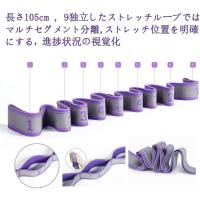 105cm 長い9独立したストレッチループでは,個々の番号付きループは、ストレッチの進行状況を確認するのに役立ちます。バックルの革紐とは対照的に、異なった伸張のためのヨガの革紐を停止し、調節する必要がない。初心者の方や、今までできなかったポーズに挑戦したい方におススメ!