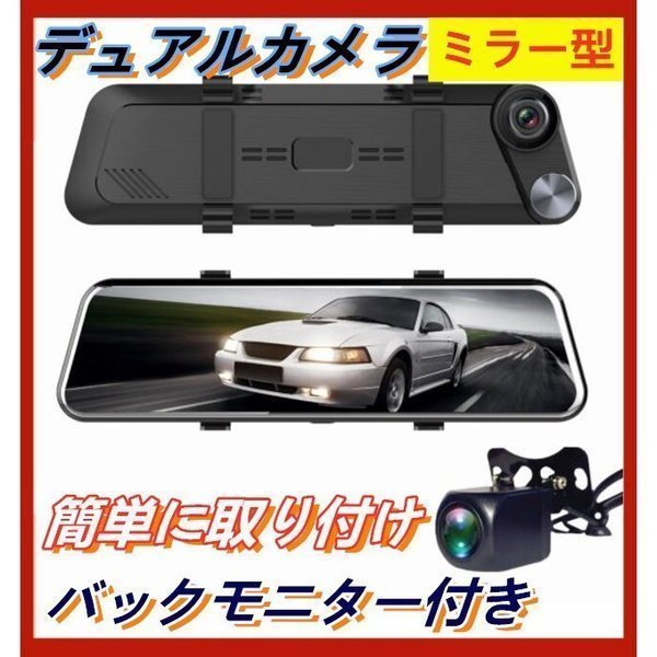 ドライブレコーダー ミラー型 前後カメラ 2カメラ タッチパネル バックカメラ 駐車監視 1200万画素 1080PフルHD高画質 10インチ 動体検知 ループ録画