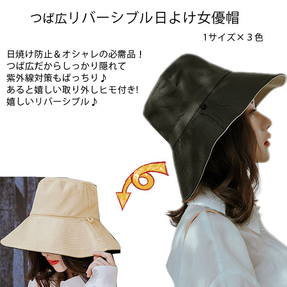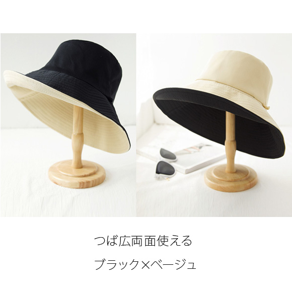 レディース 日よけ女優帽 つば広 リバーシブル mz2860